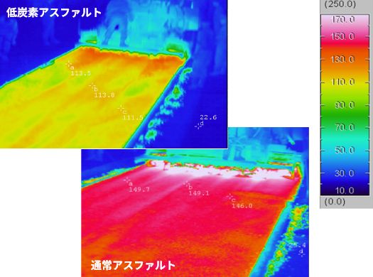 製造・使用・廃棄の段階で排出される温室効果ガスが少ない材料です。低炭素アスファルト、低炭素コンクリート、バイオアスファルトなどがあります。