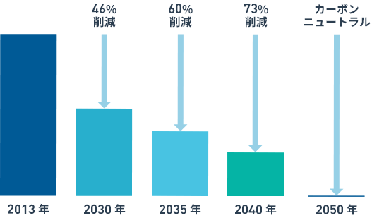 政府は2050年までにカーボンニュートラルを実現するという目標を掲げており、その中間目標として2030年までに46%、2040年までに73%の削減を目指しています。